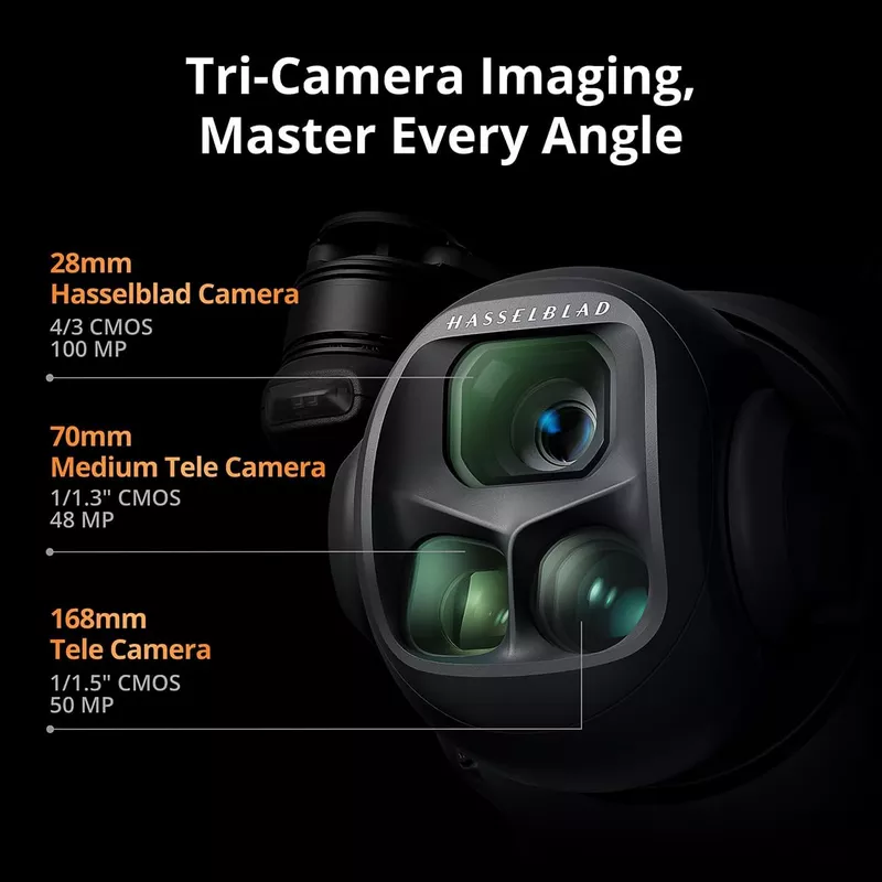 • Versatile Tele Images – Dual tele cameras on this drone deliver crisp, detailed zooms for professional aerial photography.