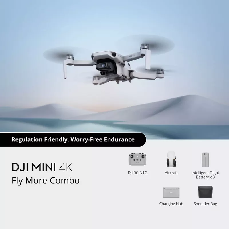 • Includes DJI Mini 4K, 3 batteries, a two-way charging hub, shoulder bag, and everything else you need for extended flight. Two extra batteries let you capture more of your favorite moments like time with family and friends.
