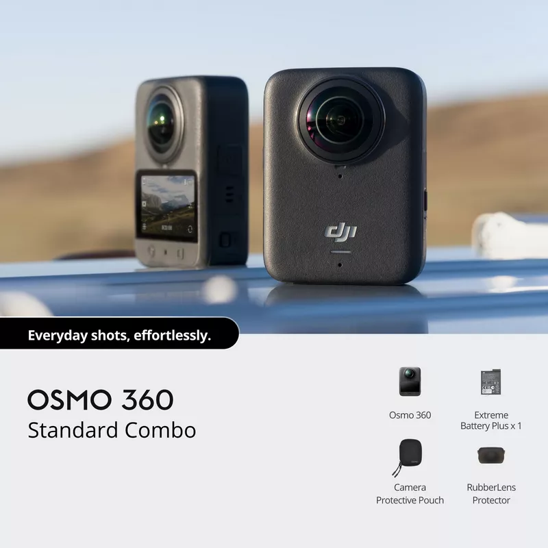 - Standard Combo With Standard Accessories – Provides essentials to start your 360 camera adventure, with flexibility to upgrade selectively. Ideal for everyday action camera users and creators.