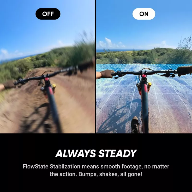 - FlowState Stabilization + 360° Horizon Lock: No gimbal needed. Insta360 X5 Essentials Bundle FlowState Stabilization and full 360° Horizon Lock deliver buttery-smooth, level footage, even during action-packed moments, bumps, or full rotations.