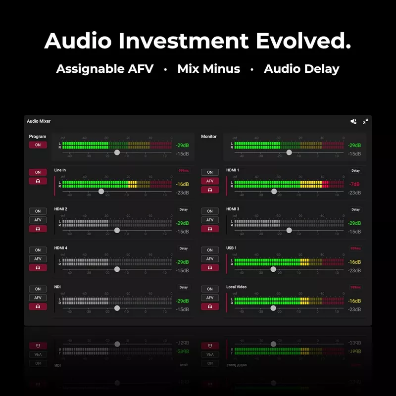 - Integrated Free NDI HX Support: Seamlessly incorporate up to 6 NDI(2 NDI FX or 6 NDI HX) inputs wirelessly or via Ethernet, making it ideal for modern IP-based workflows