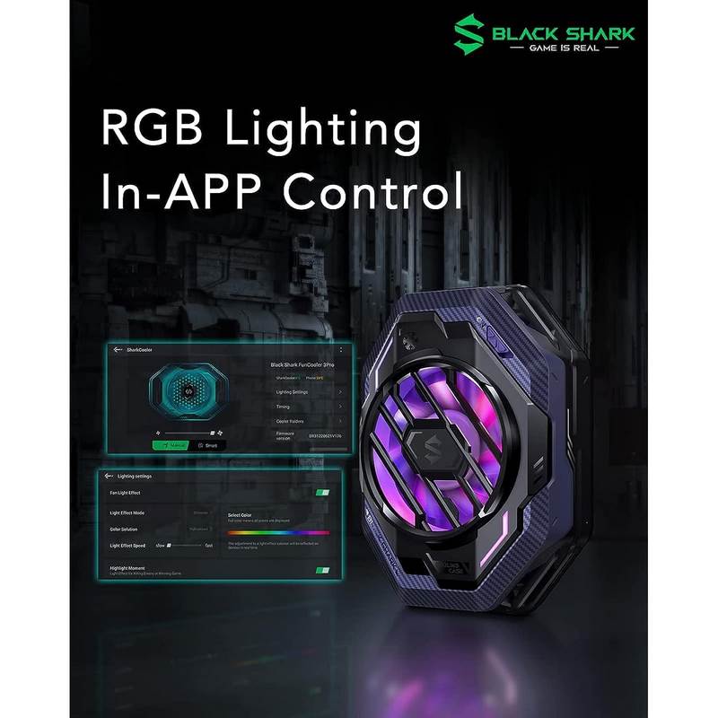 Black Shark FunCooler 3 Pro has fully customizable in Shark Arsenal APP to find your own lighting effect. You can also set a timer for auto shut down, for energy saving purpose.