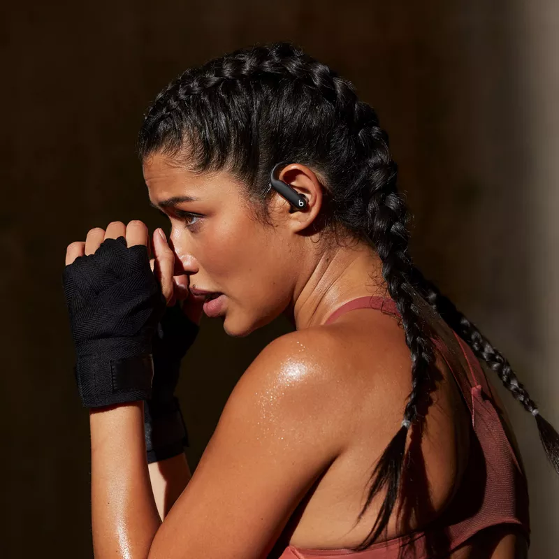 Person wearing Powerbeats Pro 2 earbuds, working out