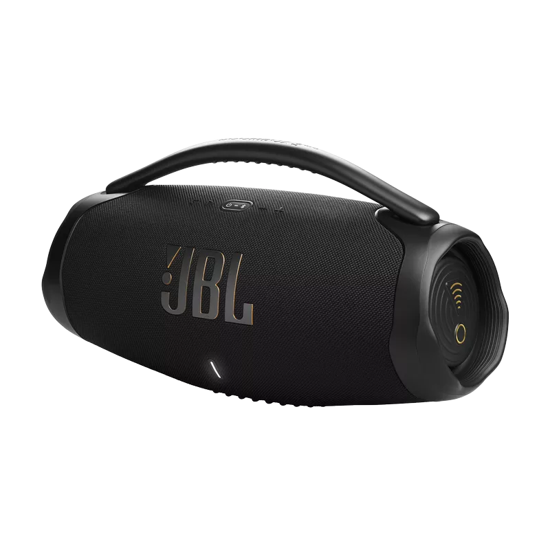 Your listening adventures can last all day as you take the JBL Boombox 3 Wi-Fi and Bluetooth speaker with you from room to room, then out to the beach or a backyard pool party. And with 24 hours of battery life, you can play music ’til the sun goes down—and comes back up again—before you’ll need a recharge.
