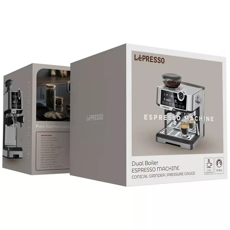 Lepresso Dual Boiler Espresso Machine with Conical Grinder & Pressure Gauge