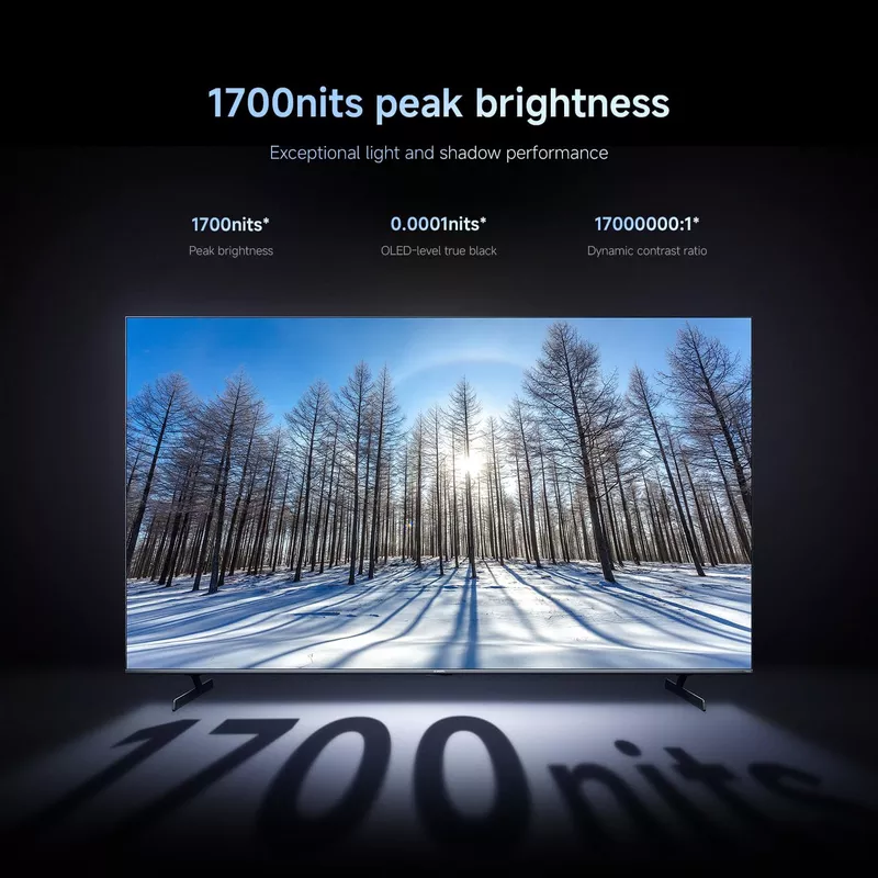 • Impressive 1700 nits peak brightness: Exceptional light and shadow performance with effective local dimming for realistic depth effect and vivid image display