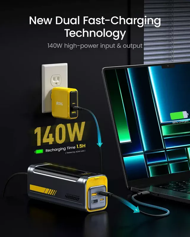 AOHI Starship 40000mAh Power Bank 140W Charger with USB-C to USB-C Cable, 2-in-1 Charging Station + Power Bank