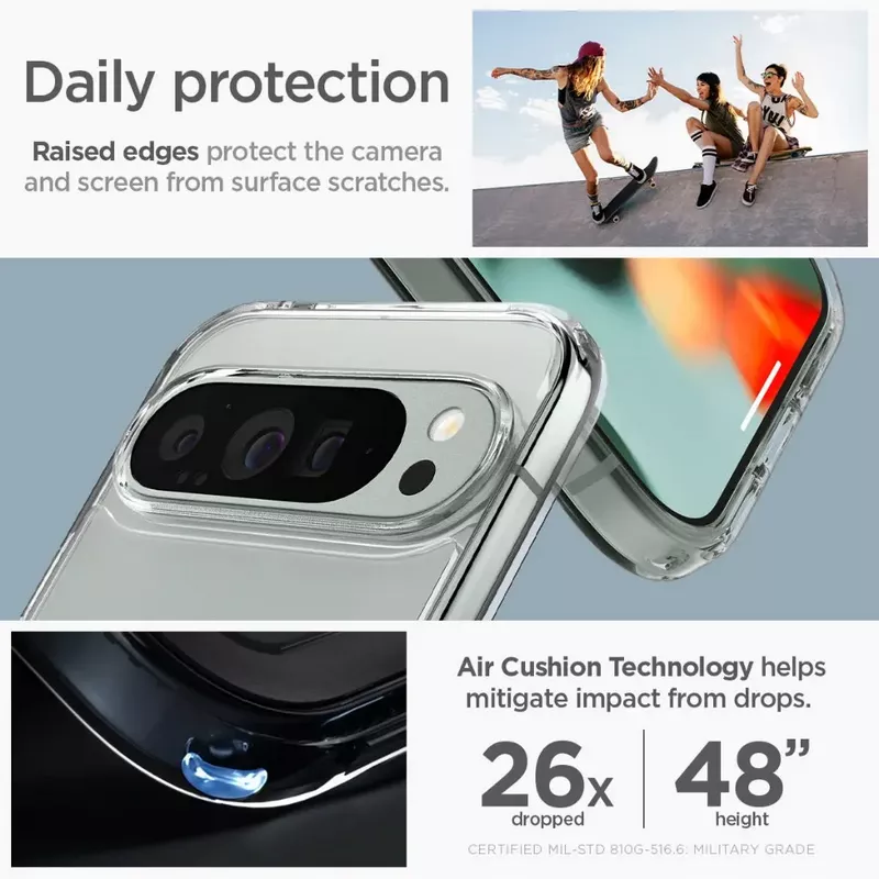 - Military-grade drop protection via Air Cushion Technology