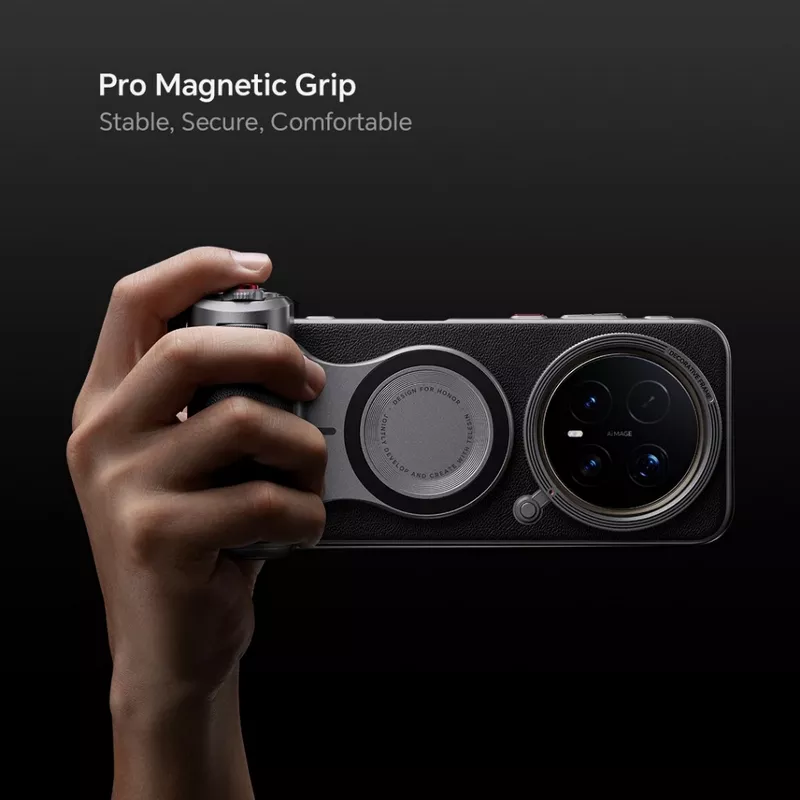 Ready to take your mobile photography to the next level, the HONOR Magic 8 Pro Professional Imaging Kit is designed to transform your smartphone into a camera-style setup for a more professional shooting experience. The kit features a magnetic Bluetooth camera grip with a physical shutter button and zoom control, allowing you to take photos more comfortably and precisely while improving stability when shooting photos or recording videos, especially in landscape mode.