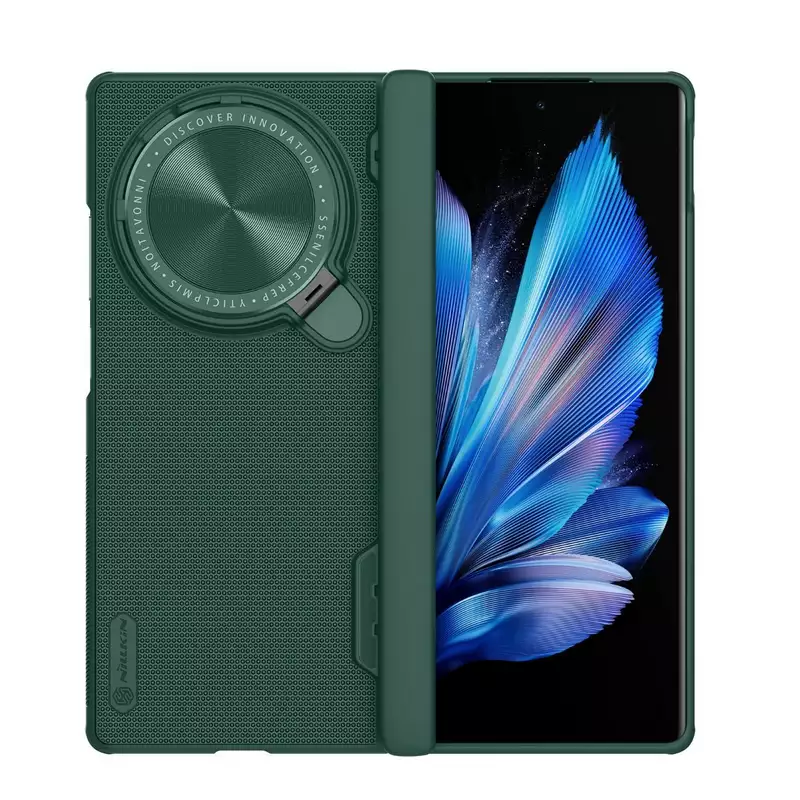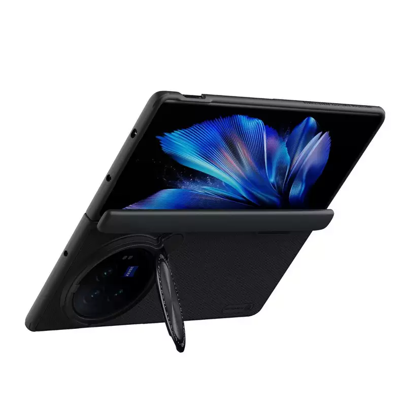 Nillkin Super Frosted Shield Prop Case for Vivo X Fold 3 Pro is an upgraded version of a classic bestseller, tailor-made for foldable smartphones. This upgrade features a full PC construction with a dual-shell full encasement design, enhancing protection even further. The innovative lens cover stand design caters to both lens protection and phone support functions. It continues the classic raised matte texture, providing a comfortable and delicate touch.
