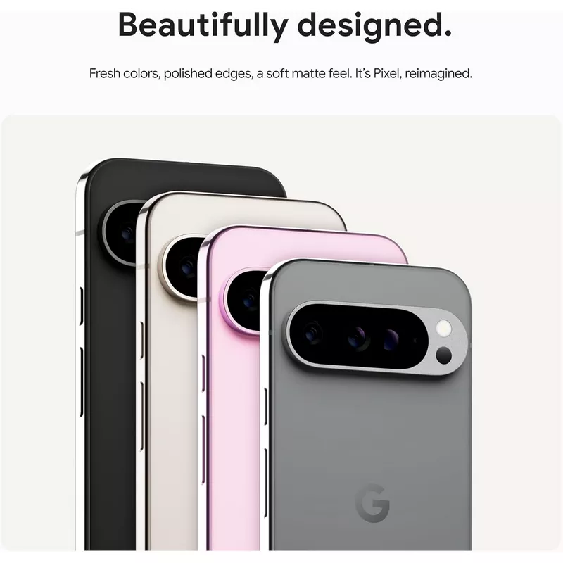 - Google Pixel 9 Pro elevated new design has a satin matte back, beautiful dual-finish camera bar, and polished metal frame that feels as good as it looks; and with the new design, everyday spills and drops are no big deal