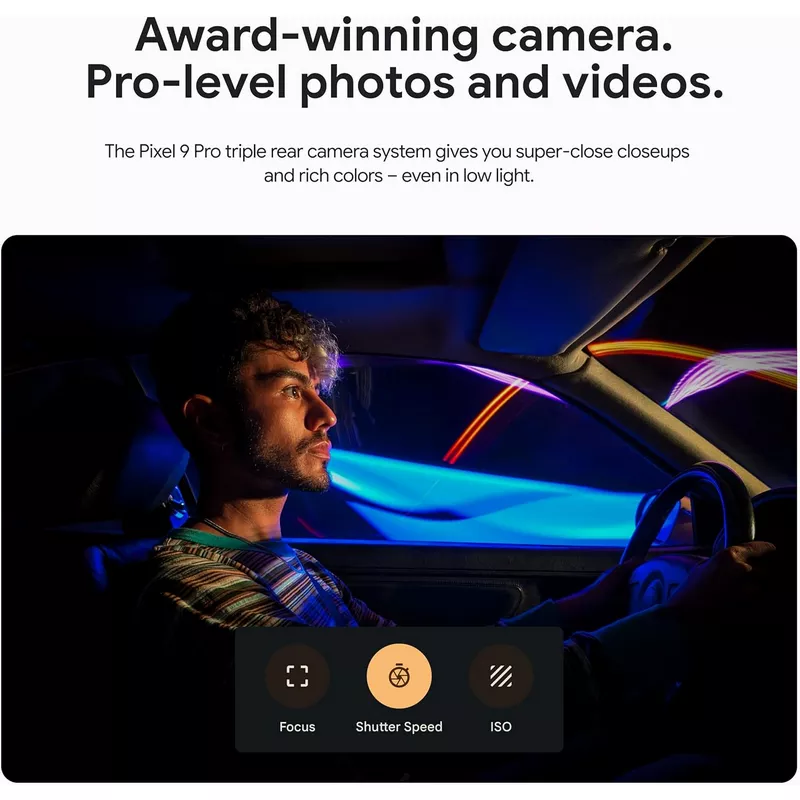 - Google Pixel 9 Pro triple rear camera is the most powerful Pixel Camera yet; get high-quality video up to 20x with Super Res Zoom Video; enhance your videos up to 8K with Video Boost; and take sharp videos in low light with Night Sight Video