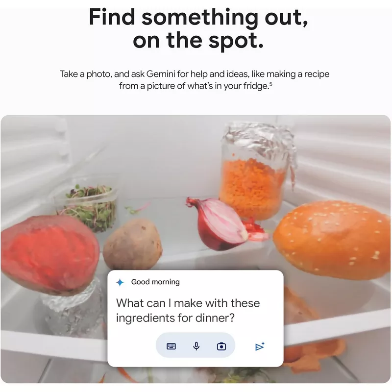 Take a photo and ask Gemini for help, like making recipes from a photo of what’s in your fridge.