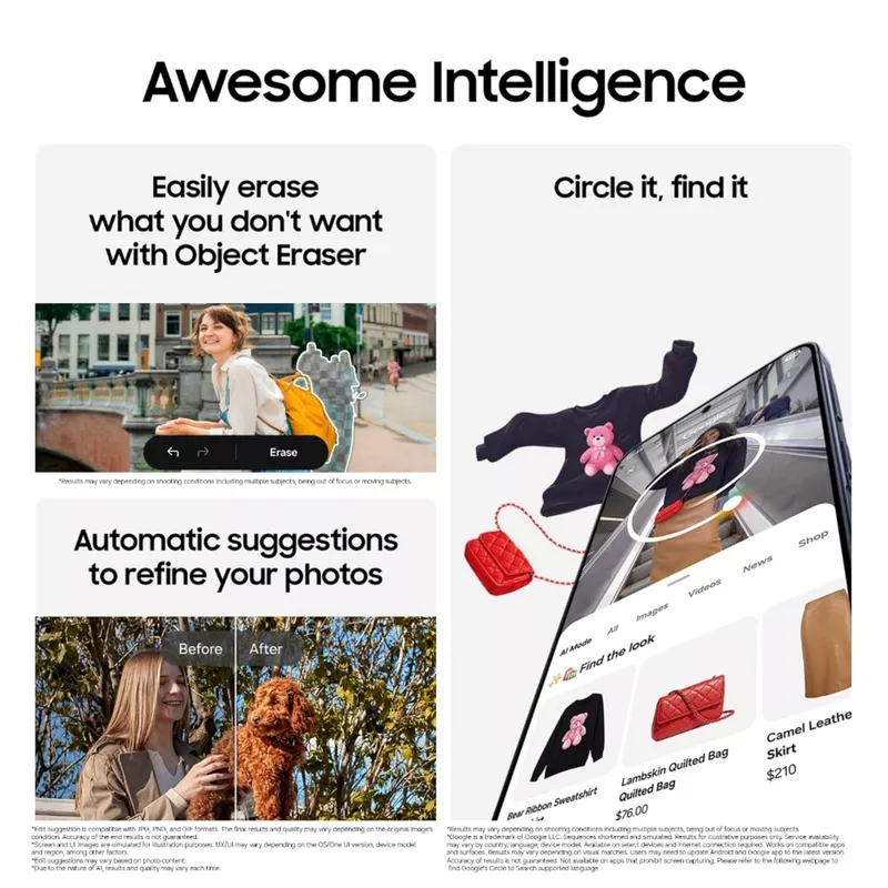 - Awesome Intelligence – With in-built Personal AI assistants – Bixby, Gemini Live, and Perplexity, it offers the best agentic AI experience. Enhanced Circle to Search lets you search-the-look and try-on the latest fashion virtually. Get Defense grade security with Samsung Knox, Hassle free payments with Tap and Pay on Samsung Wallet and seamless experience with the latest OneUI 8.5.