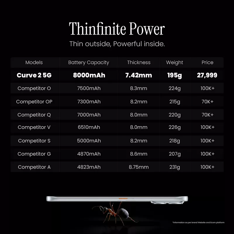 • The World’s Slimmest 3D-Curved 5G Phone with 8000 mAh Battery (7.42mm)