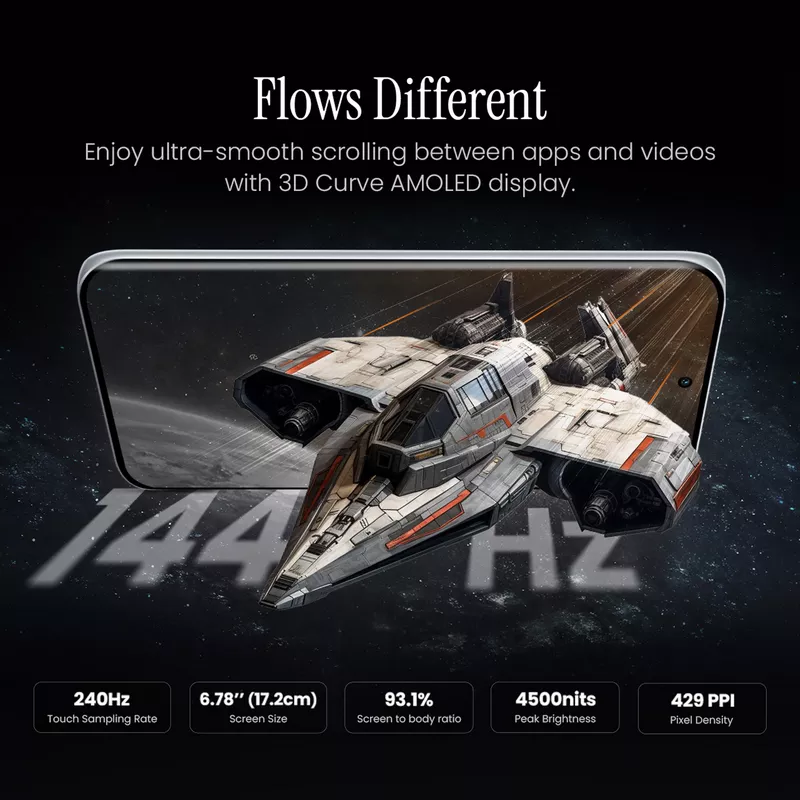 • 6.78-inch AMOLED, 144Hz, 2304Hz PWM, 4500 nits (peak), 1208 x 2644 pixels