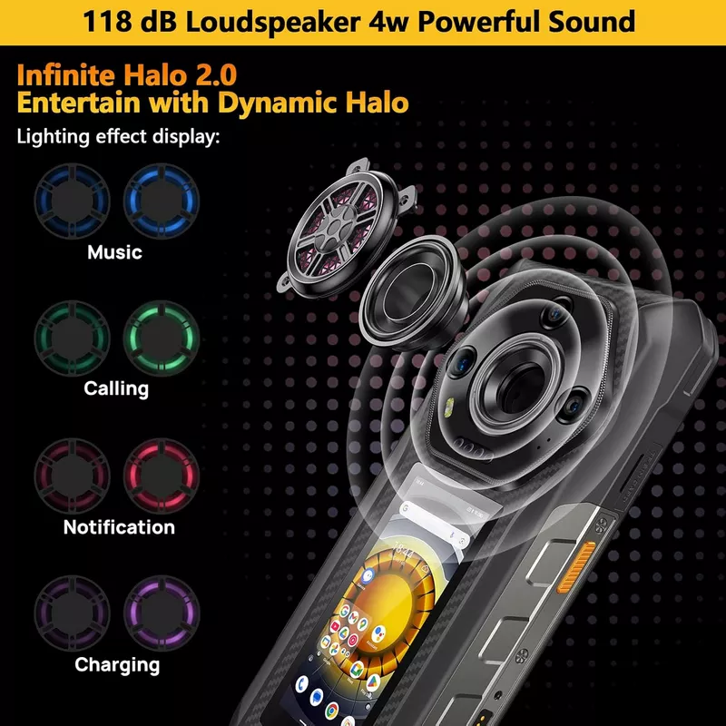 • Infinite Halo 2.0: RGB led on the back (music, calling, notification, charging)