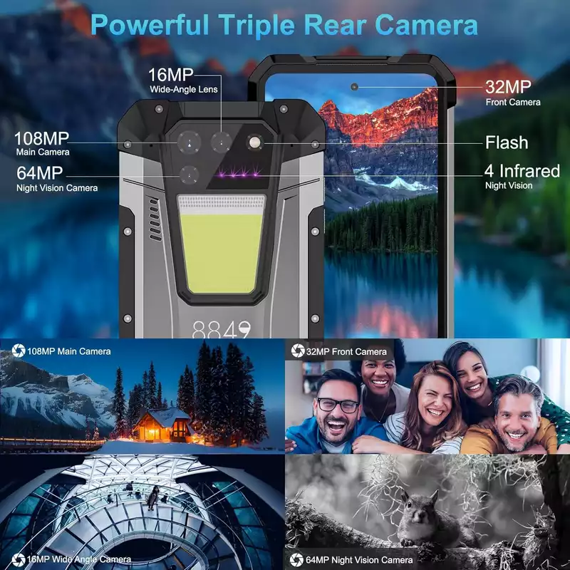 15500mAh Battery / Single Speaker / 108MP Main Camera /64MP Night Vision Camera / IP68 Waterproof / 16MP Wide-angle Camera