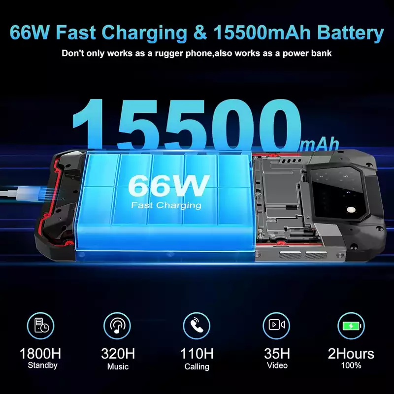 15500mAh Rugged Smartphone with Built-in Laser Projector