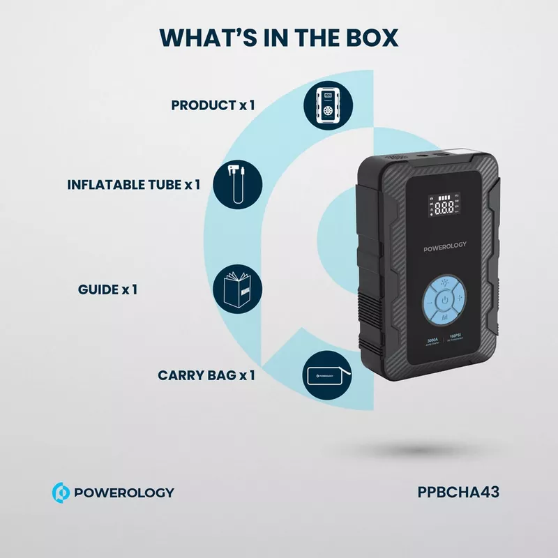 Powerology 20000mAh Power Bank Jump Start Air Compressor (PPBCHA43) 1