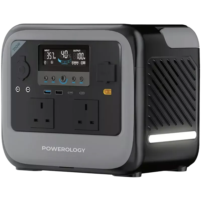 The Powerology Pater II Portable Power Station 700W in Gray is a dual-scene power solution for everyday and emergency power needs. Due to the varied battery capacity of 472.5Wh, this machine is a reliable power source for multiple devices. Featuring a 230V AC output, it provides 700W continuous power, ideal for small appliances and gadgets, with a peak power of 1400W. The 350W max MPPT solar input and voltage input of 12-60V ensure efficient solar charging, while the AC input offers quick recharge at 500W.